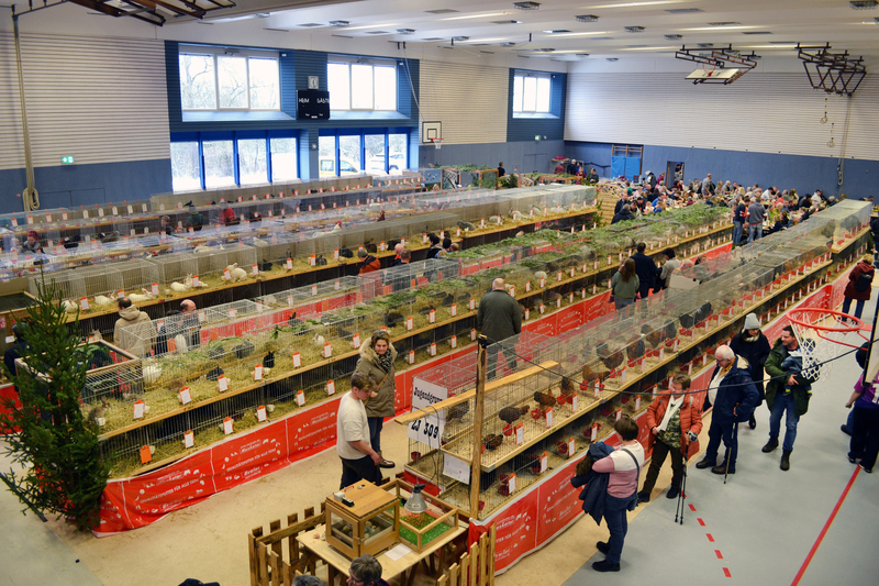 In der Schubarthalle wurden über 600 Tiere ausgestellt: Puten, Gänse, Hühner, Perlhühner, Wachteln, Tauben und Kaninchen konnten bestaunt werden. Da die Jugendgruppe ihr 60-jähriges Bestehen feierte, wurde die Tiere der Jugendzüchter separat zur Schau gestellt – dies waren über 100 Tiere.
