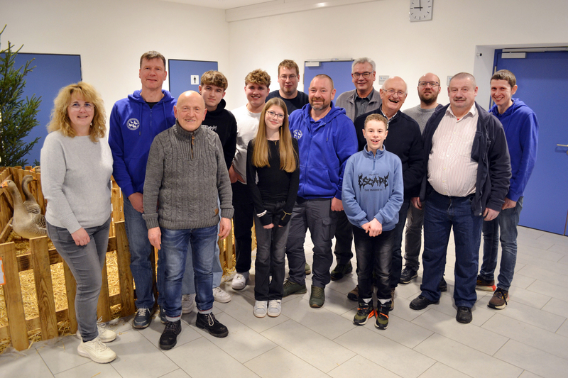 Die bei der Preisverleihung am Züchterabend anwesenden Vereinsmeister (von links): Jugendleiterin Bianca Schneider, zweiter Vorsitzender Ulrich Federolf, Herbert Mettmann, Theo Kleinknecht, Tobias Kleinknecht, Greta Hirn, Timo Weiland, Matthias Wanner, erster Vorsitzender Friedrich Günther, Sebastian Merz, Alfred Schmid, Sascha Hermann, Walter Kirsch und Philipp Kraft (Jugendleiter).